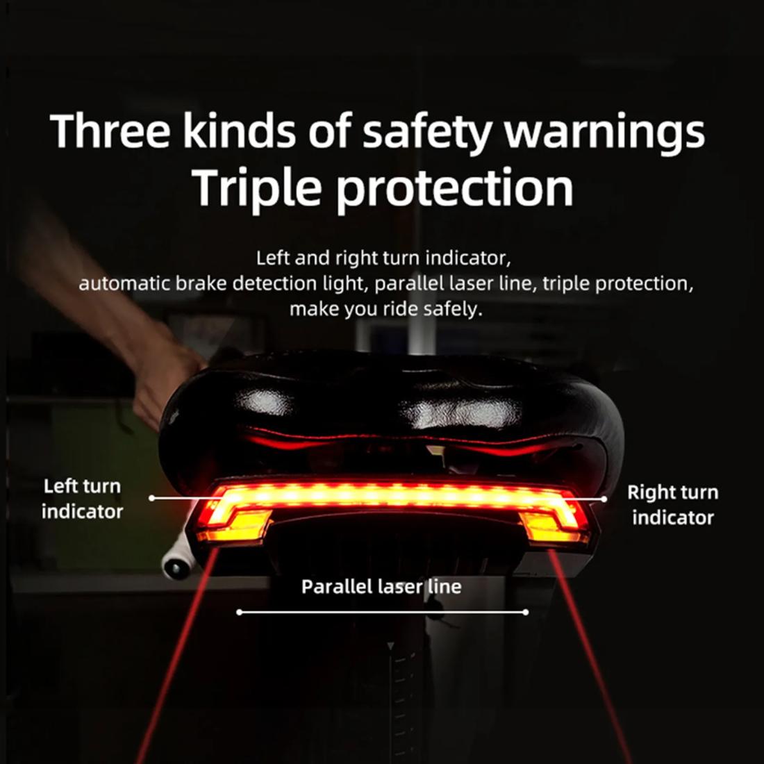 La télécommande sans fil et le feu arrière à LED lumineux sont parfaitement combinés pour attirer l'attention des conducteurs à l'écart des pâtés de maisons, grâce à son clignotant et à divers modes de clignotement.