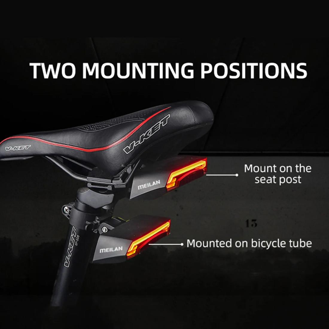 Deux façons de fixer le feu arrière, le fond de la selle ou le tuyau supérieur.